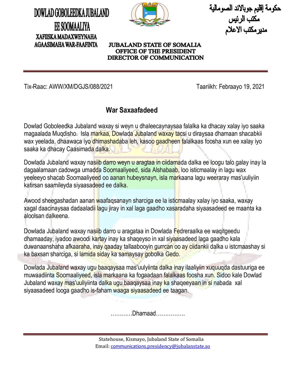 Jubaland State House On Twitter Jubaland State Condemns The Violence Meted Out By The Somali Government Against Unarmed Civilians And The Illegal Use Of The Armed Forces Https T Co Sye4qyomyv